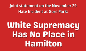 Joint Statement on the November 29 Hate Incident at Gore Park: White Supremacy Has No Place in Hamilton